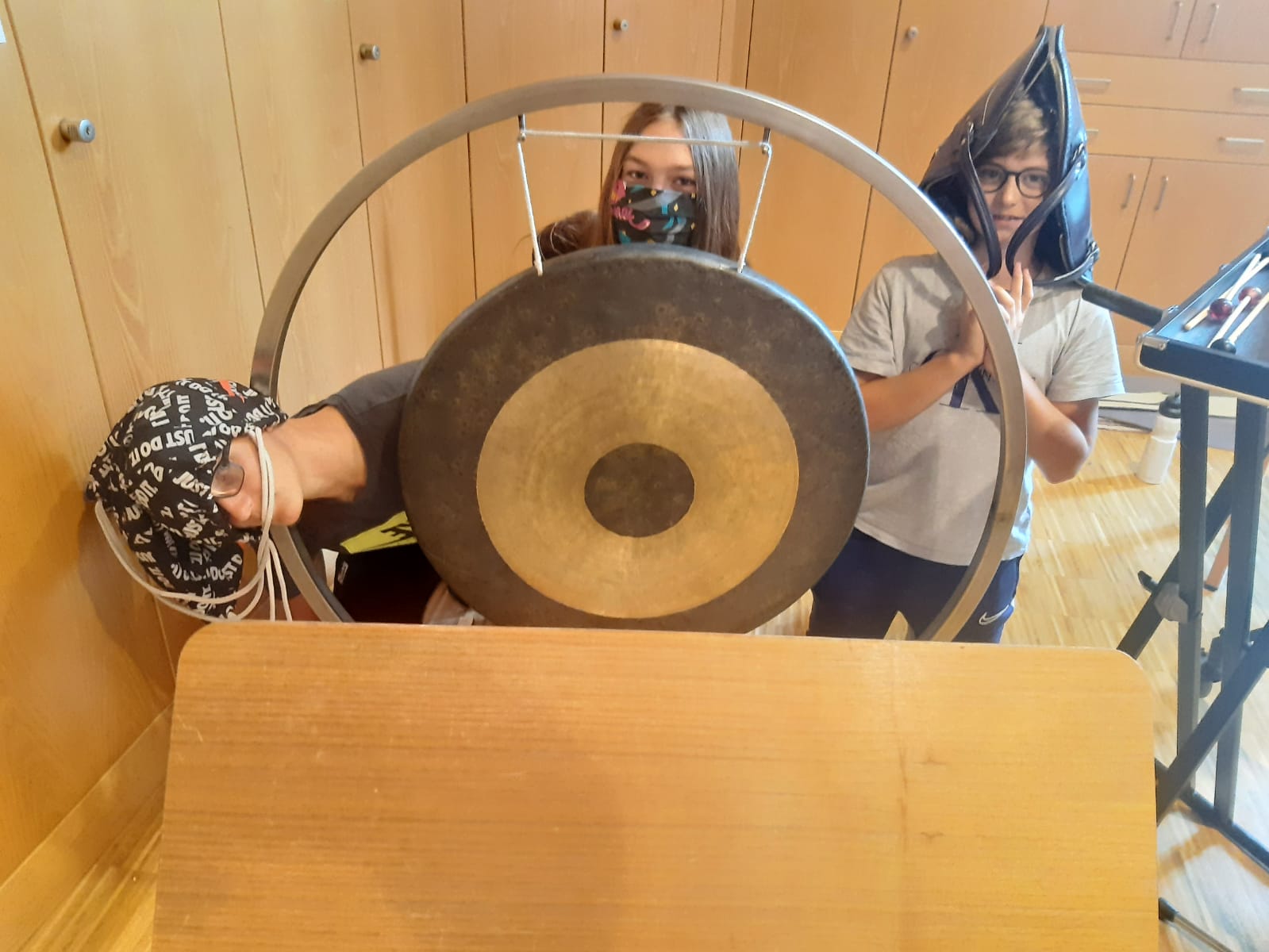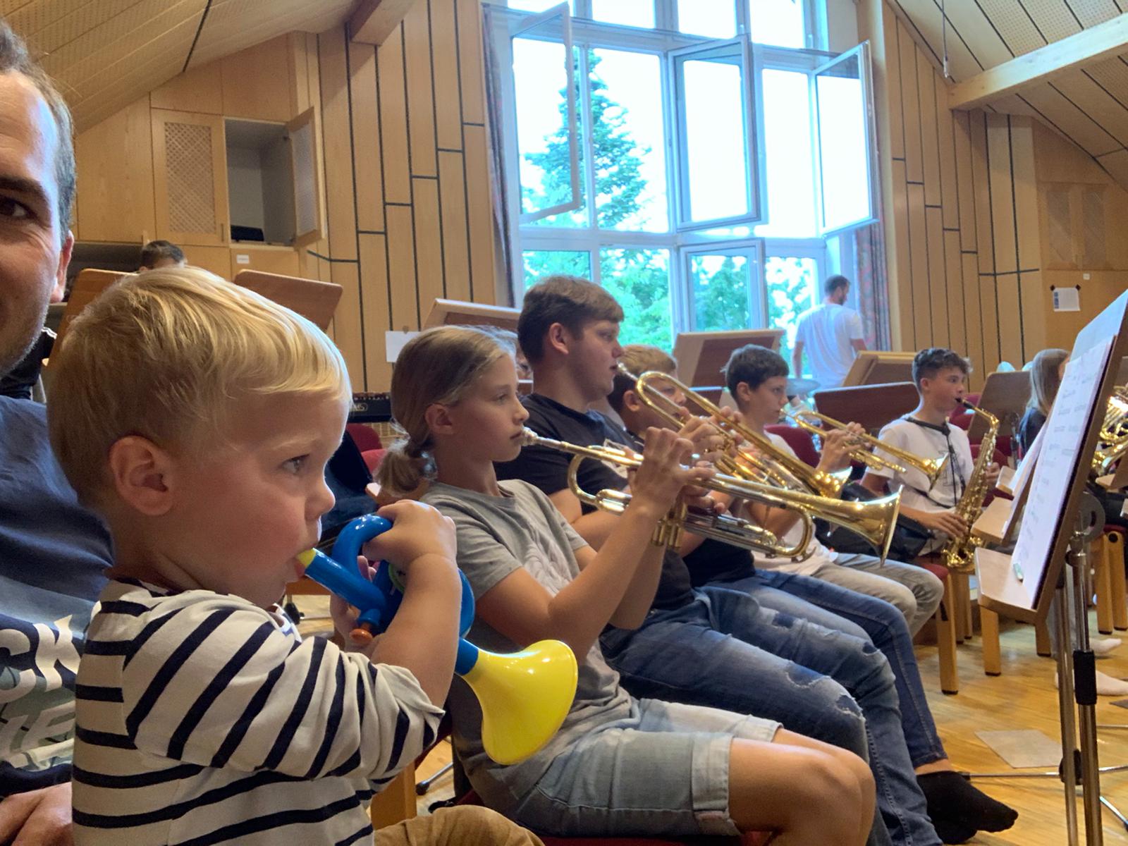 Auch die Jungmusiker haben sich die Freude am gemeinsamen Spielen während der „kurzen“ Pause nicht nehmen lassen.![]()