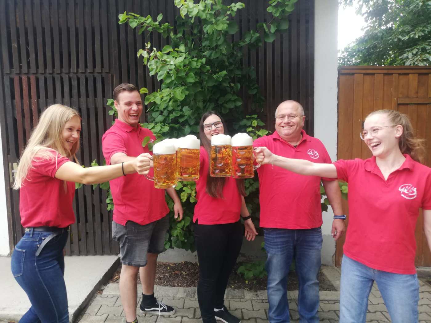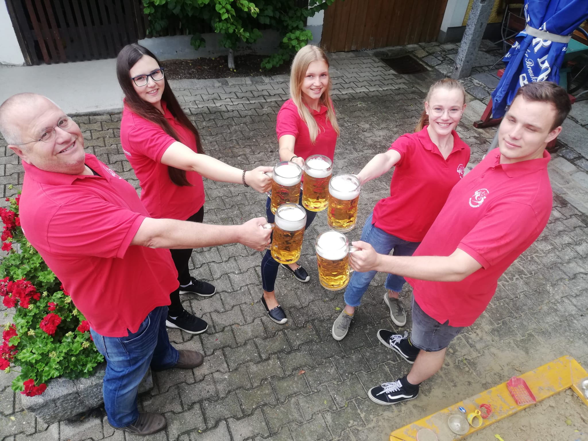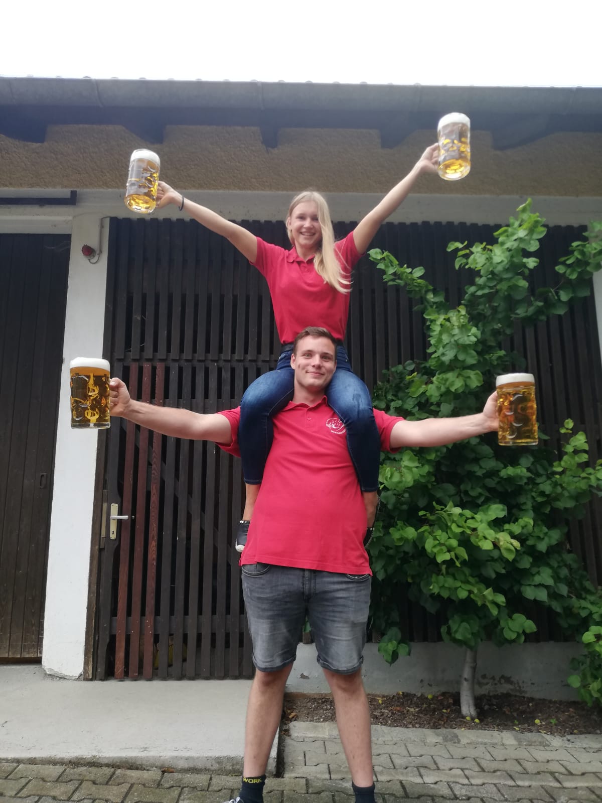 Wie lange können 20 Musikerinnen und Musiker des Musikverein Eggerding jeweils einen vollen Maßkrug stemmen?