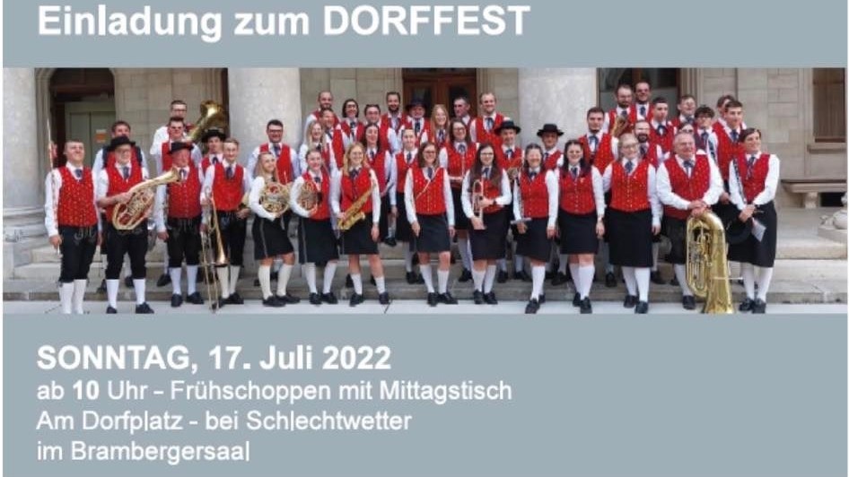 Am Sonntag dem 17. Juli 2022 laden wir zudem alle herzlich zu unserem jährlichen Dorffest am Dorfplatz ein! Ab 10:00 findet ein gemütliches Frühshoppen mit Mittagstisch statt!