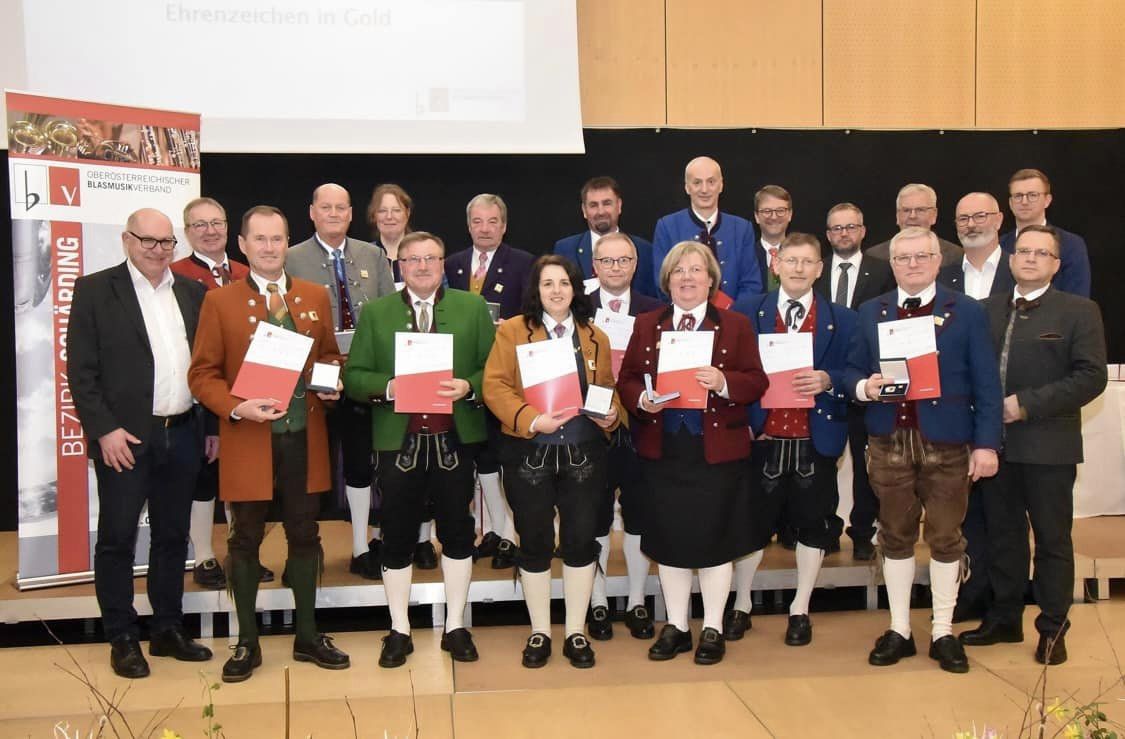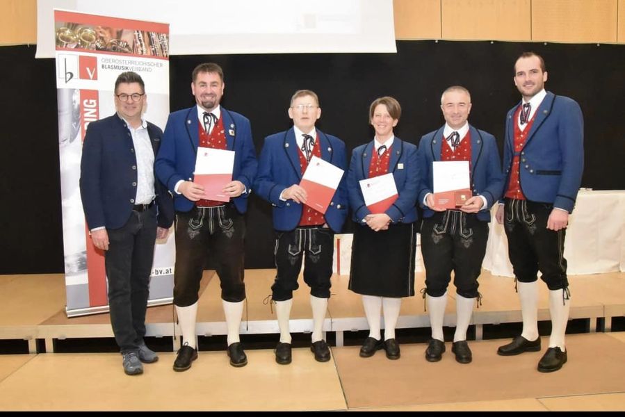 Am 9.2 fand die diesjährige Ehrung verdienter MusikerInnen in Dorf an der Pram statt!Auch einige unserer MusikerInnen wurden geehrt!Wir dürfen Eva Dantler zur Verdienstmedaille in Gold gratulieren, sowie Josef Dantler, Josef Dullinger und Ferdinand Hörmaier zum Ehrenzeichen in Gold!Ernst Greiner und Johann Hauer dürfen wir zum Verdienstkreuz in Silber gratulieren!