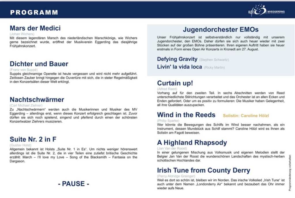 Nun möchten wir euch unser Programm für das diesjährige Frühjahrskonzert vorstellen!
