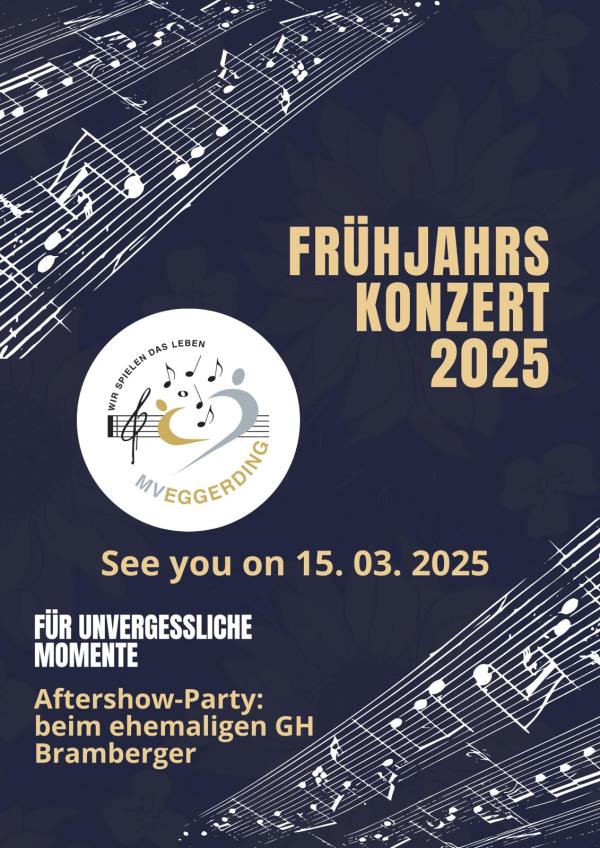 Der Musikverein Eggerding lädt am 15.März 2025 um 20:00 zum diesjährigen Frühjahrskonzert in den Brambergersaal, dem schönsten Ballsaal des Innviertels ein! Bei diesem Konzertabend ist von Walzer bis Polker, von klassischen bis populären Melodien für jeden etwas dabei! Für das leibliche Wohl während des Konzertabends ist gesorgt! Karten sind bei allen MusikerInnen und der Raiffeisenbank... Continue Reading →