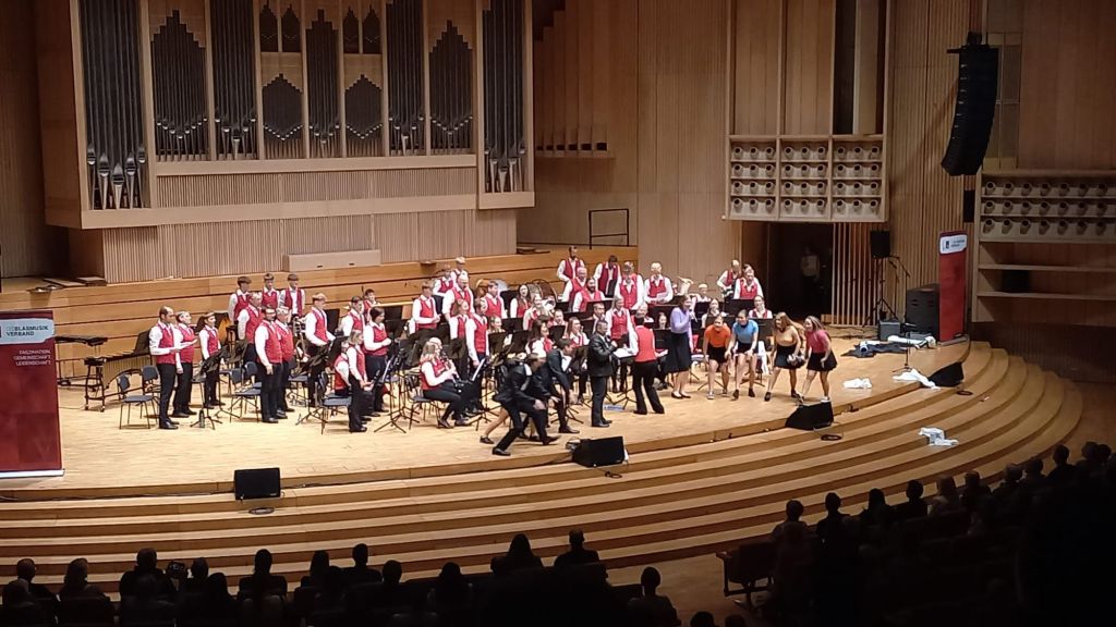 Mit einem kreativen 20-minütigen Programm durften wir uns dem Publikum und der hochkarätigen Fachjury stellen und unsere Vielseitigkeit als Orchester zeigen. Von „kraftvollen Bläsern, die Visionen zum Leben erwecken“, über „starke Stimmen mit Power und Groove“, untermalt von Background-Tänzerinnen aus eigenen Reihen, bis hin zu „Überraschungen“ wie der „Drumbone-Einlage“ unserer Schlagzeuger oder einem Flashmob aus Sängerinnen und Sängern der Eggerdinger Chöre war alles dabei.
